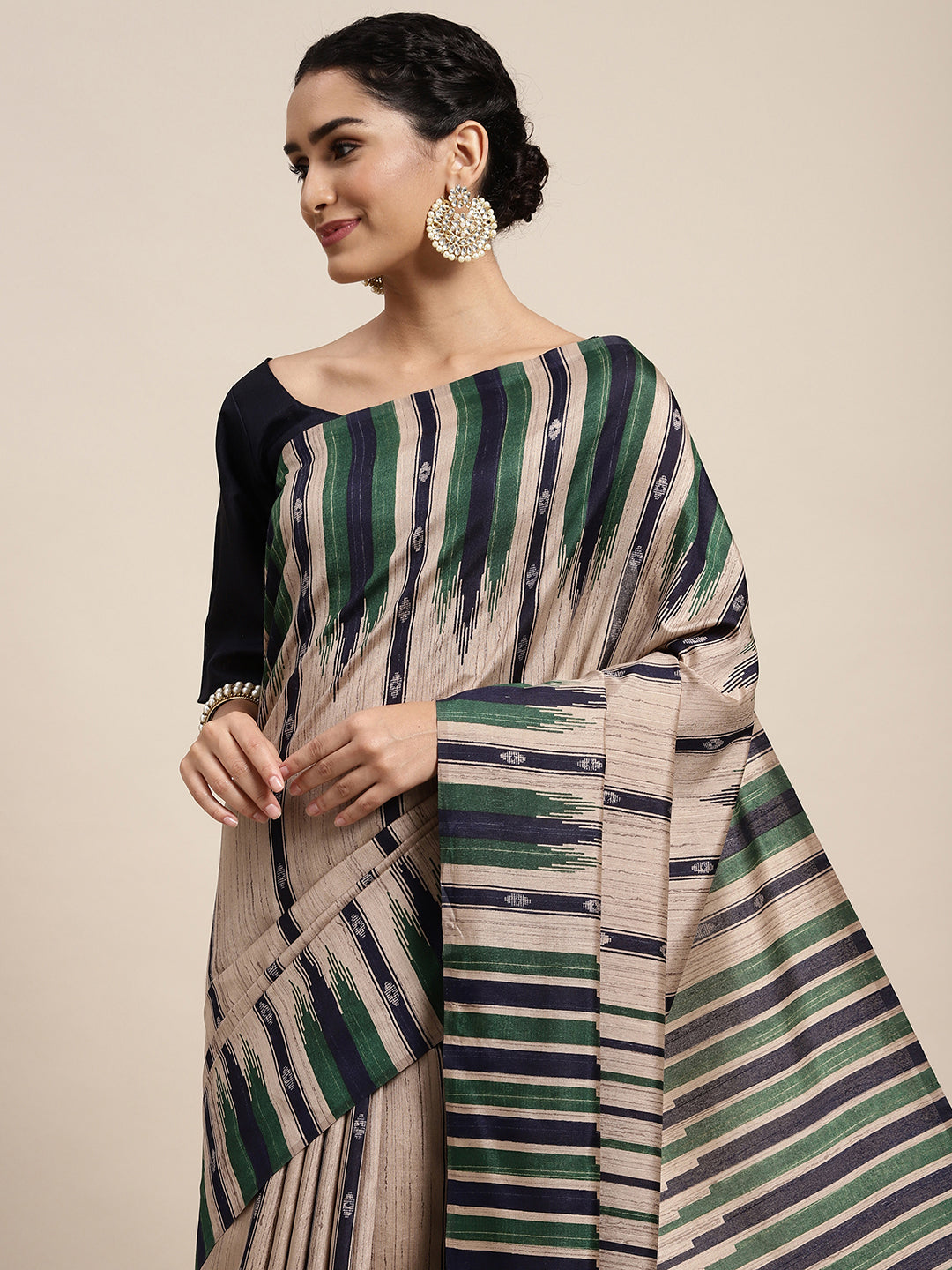 This saree from the house of Yora Ethnic is made from Bhagalpuri Silk and is Beige in color. Yora Ethnic Ethnic Sarees comes With Blouse Piece, Which can be Stitched according to Your Taste and Preference. This Saree is Crafted by Skill Craftsmen without Compromising on its Quality. With This Beautiful Design and Fabric, This Saree will fetch You Oodles of Compliments and Praise. saree fit size is 5.5 mtr saree & 0.8 mtr blouse, Free Size |.