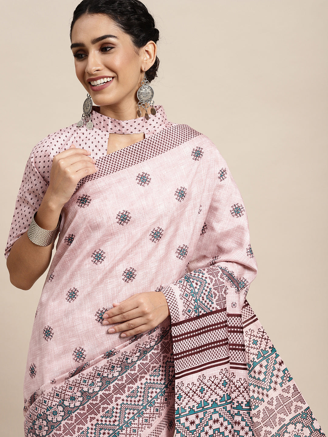 This saree from the house of Yora Ethnic is made from Bhagalpuri Silk and is Pink in color. Yora Ethnic Ethnic Sarees comes With Blouse Piece, Which can be Stitched according to Your Taste and Preference. This Saree is Crafted by Skill Craftsmen without Compromising on its Quality. With This Beautiful Design and Fabric, This Saree will fetch You Oodles of Compliments and Praise. saree fit size is 5.5 mtr saree & 0.8 mtr blouse, Free Size |.