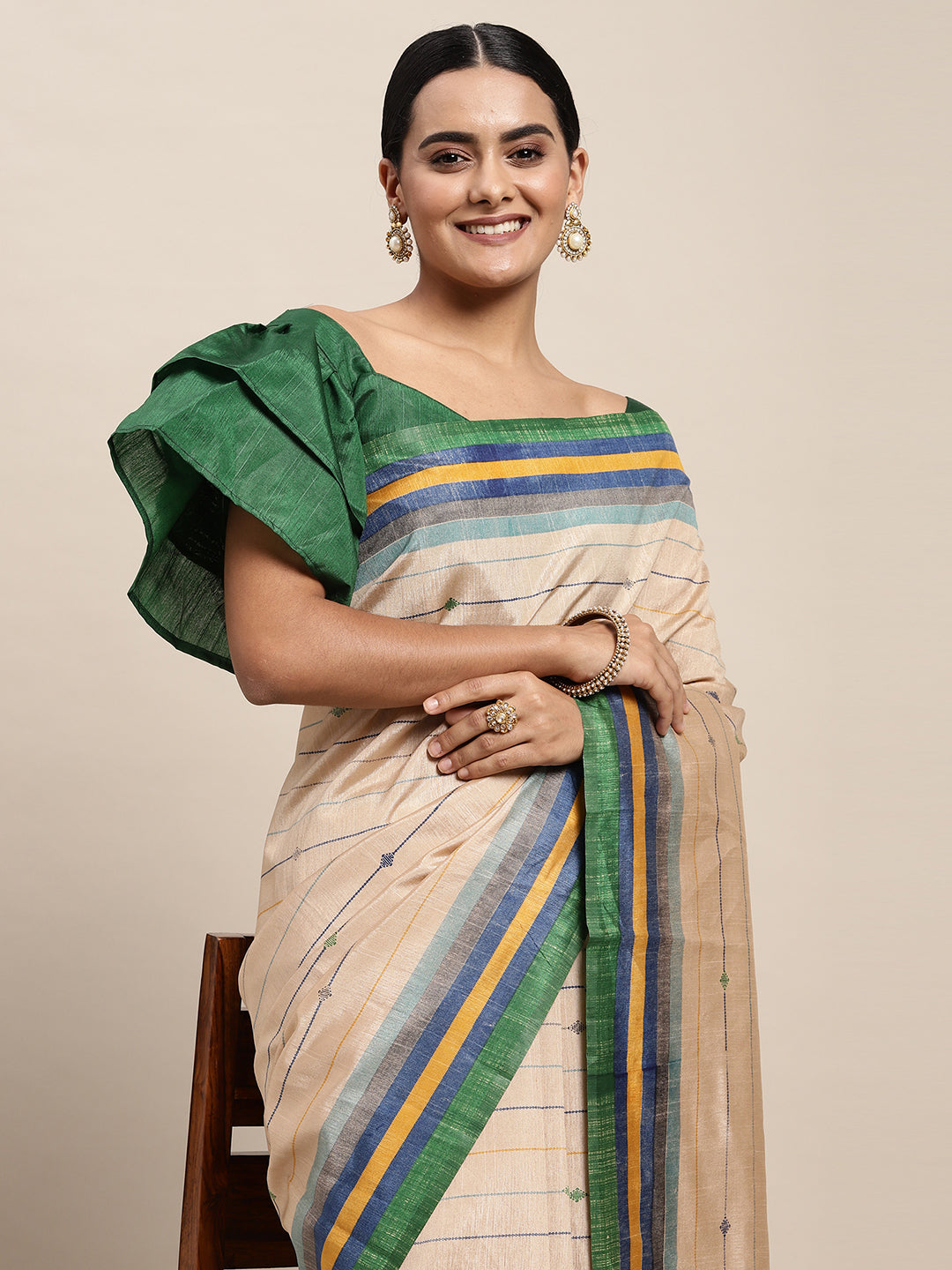 This saree from the house of Yora Ethnic is made from Bhagalpuri Silk and is Beige in color. Yora Ethnic Ethnic Sarees comes With Blouse Piece, Which can be Stitched according to Your Taste and Preference. This Saree is Crafted by Skill Craftsmen without Compromising on its Quality. With This Beautiful Design and Fabric, This Saree will fetch You Oodles of Compliments and Praise. saree fit size is 5.5 mtr saree & 0.8 mtr blouse, Free Size |.