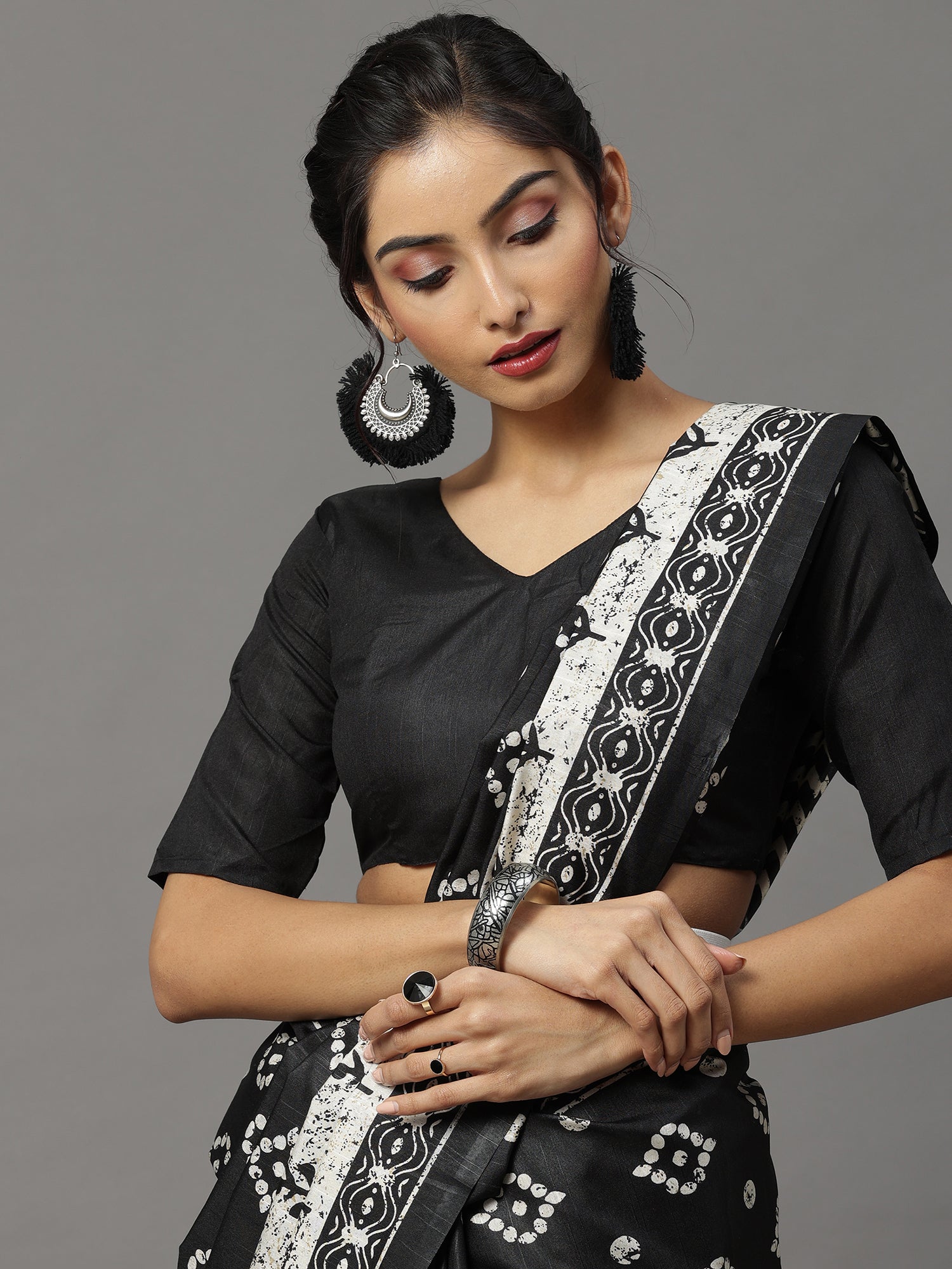 This saree from the house of Yora Ethnic is made from Bhagalpuri Silk and is Black in color. Yora Ethnic Ethnic Sarees comes With Blouse Piece, Which can be Stitched according to Your Taste and Preference. This Saree is Crafted by Skill Craftsmen without Compromising on its Quality. With This Beautiful Design and Fabric, This Saree will fetch You Oodles of Compliments and Praise. saree fit size is 5.5 mtr saree & 0.8 mtr blouse, Free Size |.
