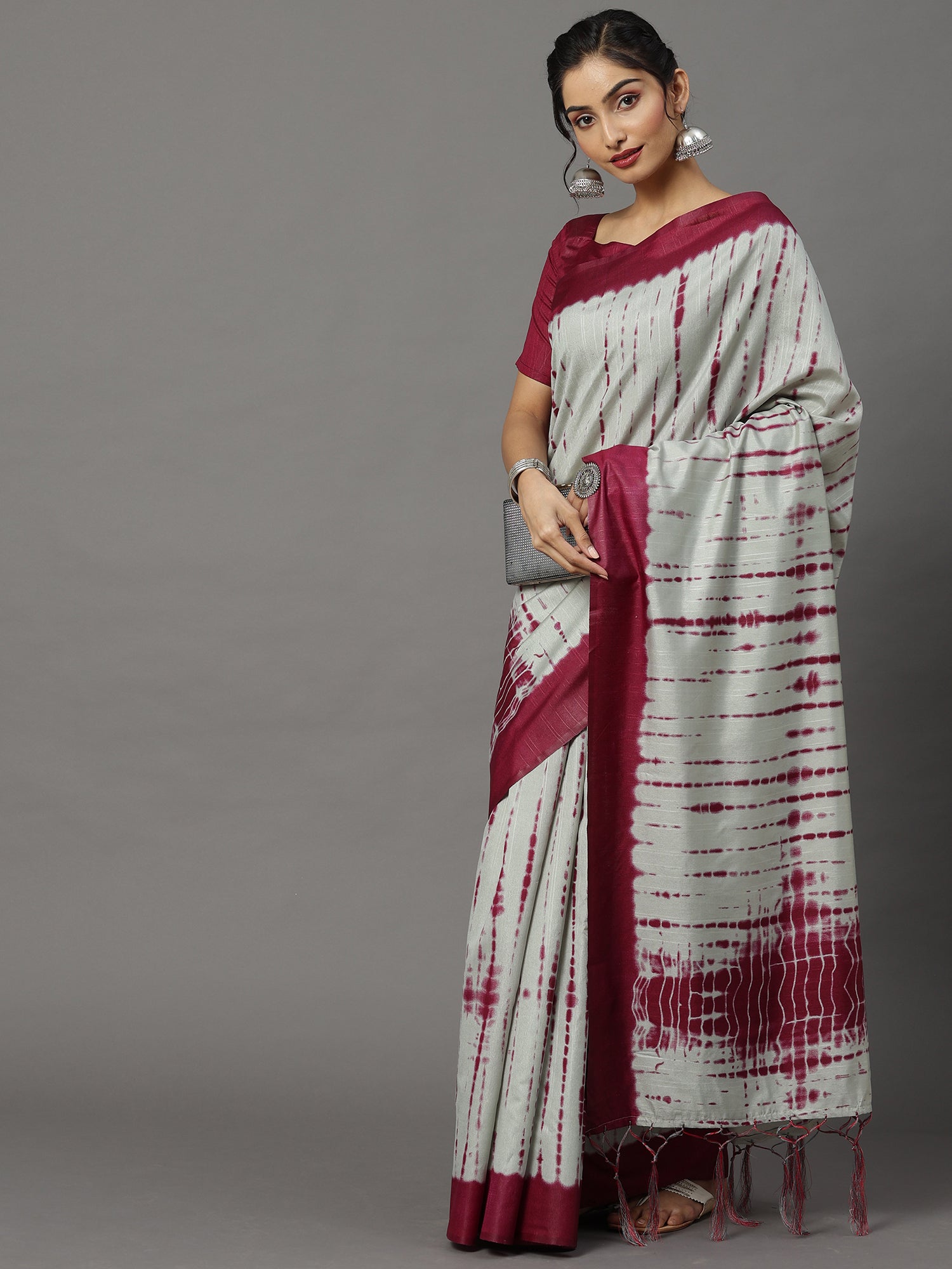This saree from the house of Yora Ethnic is made from Bhagalpuri Silk and is Grey in color. Yora Ethnic Ethnic Sarees comes With Blouse Piece, Which can be Stitched according to Your Taste and Preference. This Saree is Crafted by Skill Craftsmen without Compromising on its Quality. With This Beautiful Design and Fabric, This Saree will fetch You Oodles of Compliments and Praise. saree fit size is 5.5 mtr saree & 0.8 mtr blouse, Free Size |.