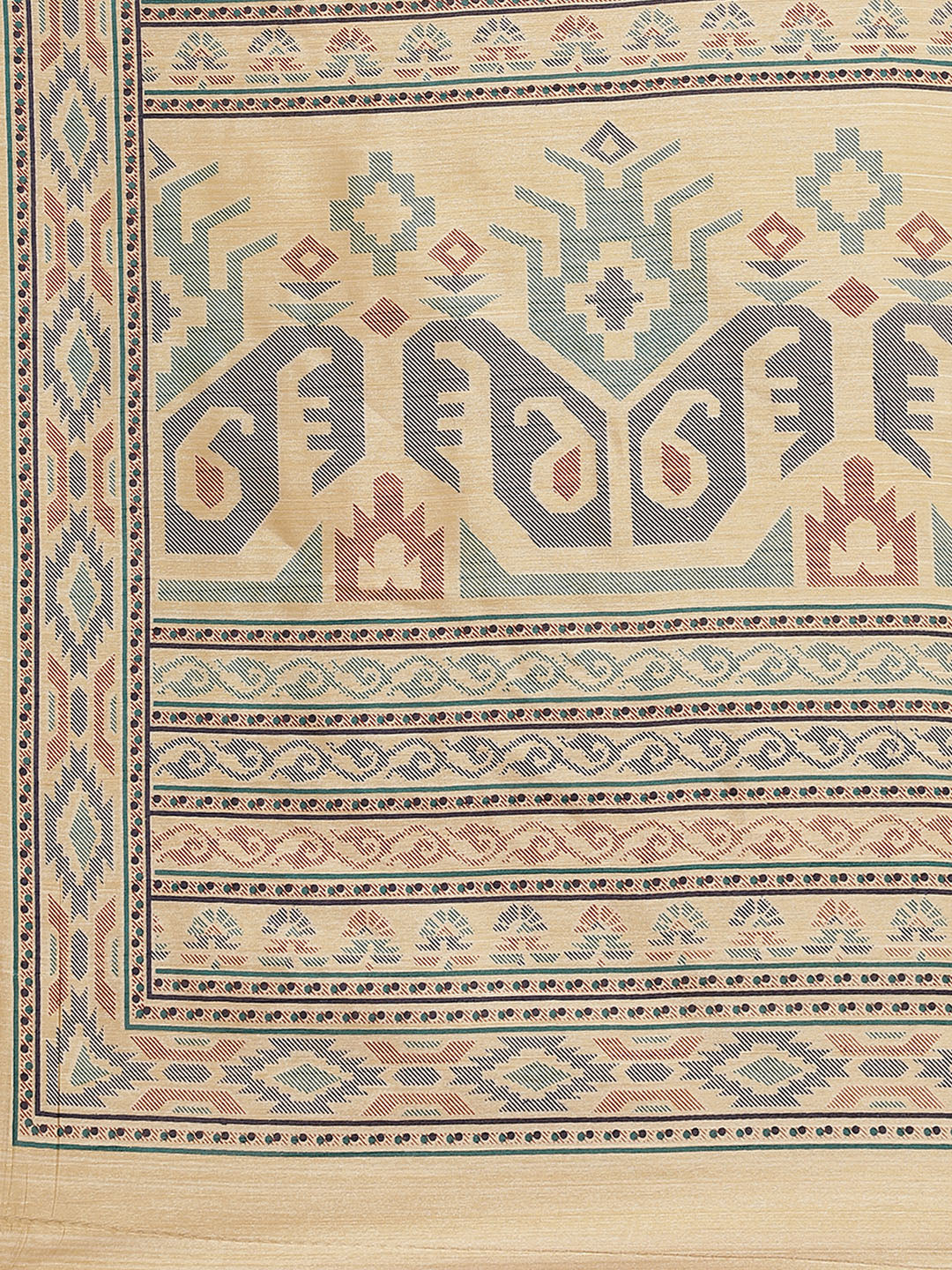 This saree from the house of Yora Ethnic is made from Bhagalpuri Silk and is Beige in color. Yora Ethnic Ethnic Sarees comes With Blouse Piece, Which can be Stitched according to Your Taste and Preference. This Saree is Crafted by Skill Craftsmen without Compromising on its Quality. With This Beautiful Design and Fabric, This Saree will fetch You Oodles of Compliments and Praise. saree fit size is 5.5 mtr saree & 0.8 mtr blouse, Free Size |Designer ikkat saree.