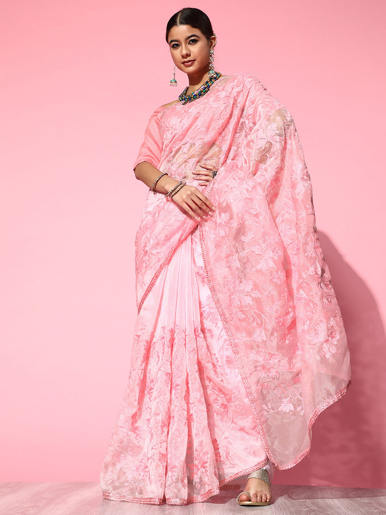 This saree from the house of Yora Ethnic is made from Organza and is Pink in color. Yora Ethnic Ethnic Sarees comes With Blouse Piece, Which can be Stitched according to Your Taste and Preference. This Saree is Crafted by Skill Craftsmen without Compromising on its Quality. With This Beautiful Design and Fabric, This Saree will fetch You Oodles of Compliments and Praise. saree fit size is 5.5 mtr saree & 0.8 mtr blouse, Free Size |.