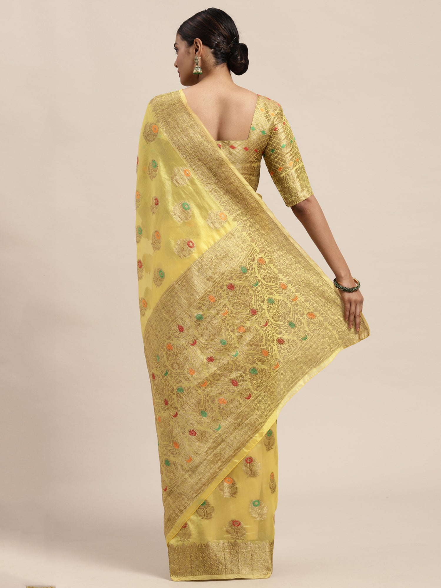 This saree from the house of Yora Ethnic is made from Silk Blend and is Yellow in color. Yora Ethnic Ethnic Sarees comes With Blouse Piece, Which can be Stitched according to Your Taste and Preference. This Saree is Crafted by Skill Craftsmen without Compromising on its Quality. With This Beautiful Design and Fabric, This Saree will fetch You Oodles of Compliments and Praise. saree fit size is 5.5 mtr saree & 0.8 mtr blouse, Free Size |kanjeevaram silk saree.