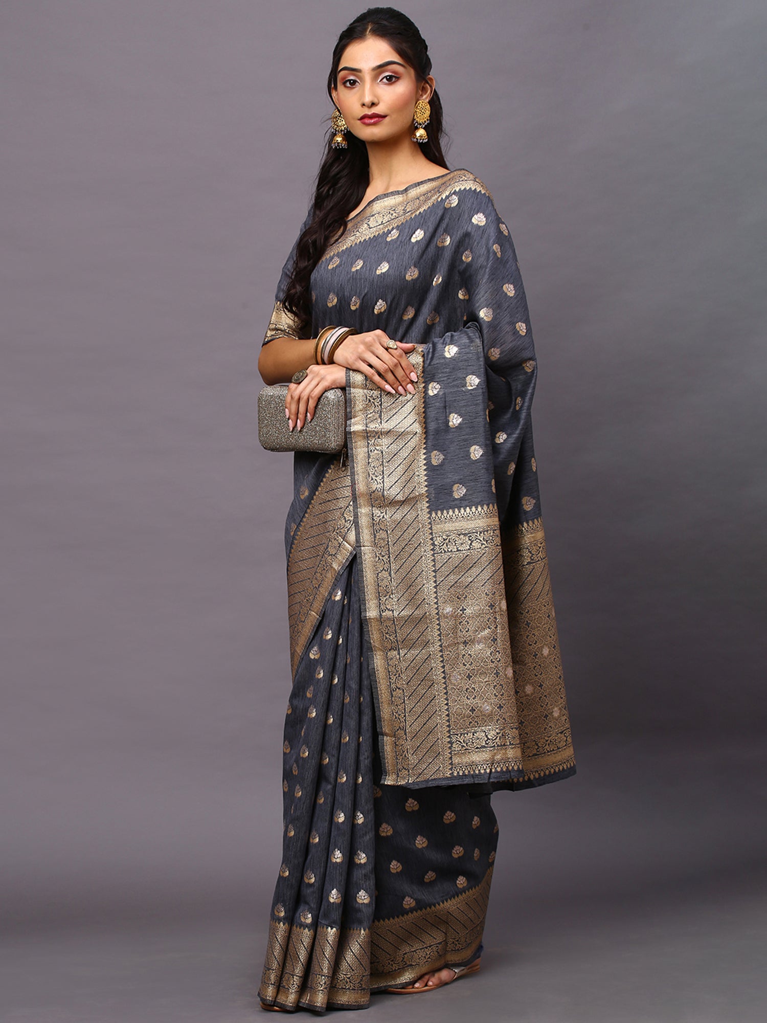 This saree from the house of Yora Ethnic is made from Silk Blend and is Grey in color. Yora Ethnic Ethnic Sarees comes With Blouse Piece, Which can be Stitched according to Your Taste and Preference. This Saree is Crafted by Skill Craftsmen without Compromising on its Quality. With This Beautiful Design and Fabric, This Saree will fetch You Oodles of Compliments and Praise. saree fit size is 5.5 mtr saree & 0.8 mtr blouse, Free Size |Banarasi saree.