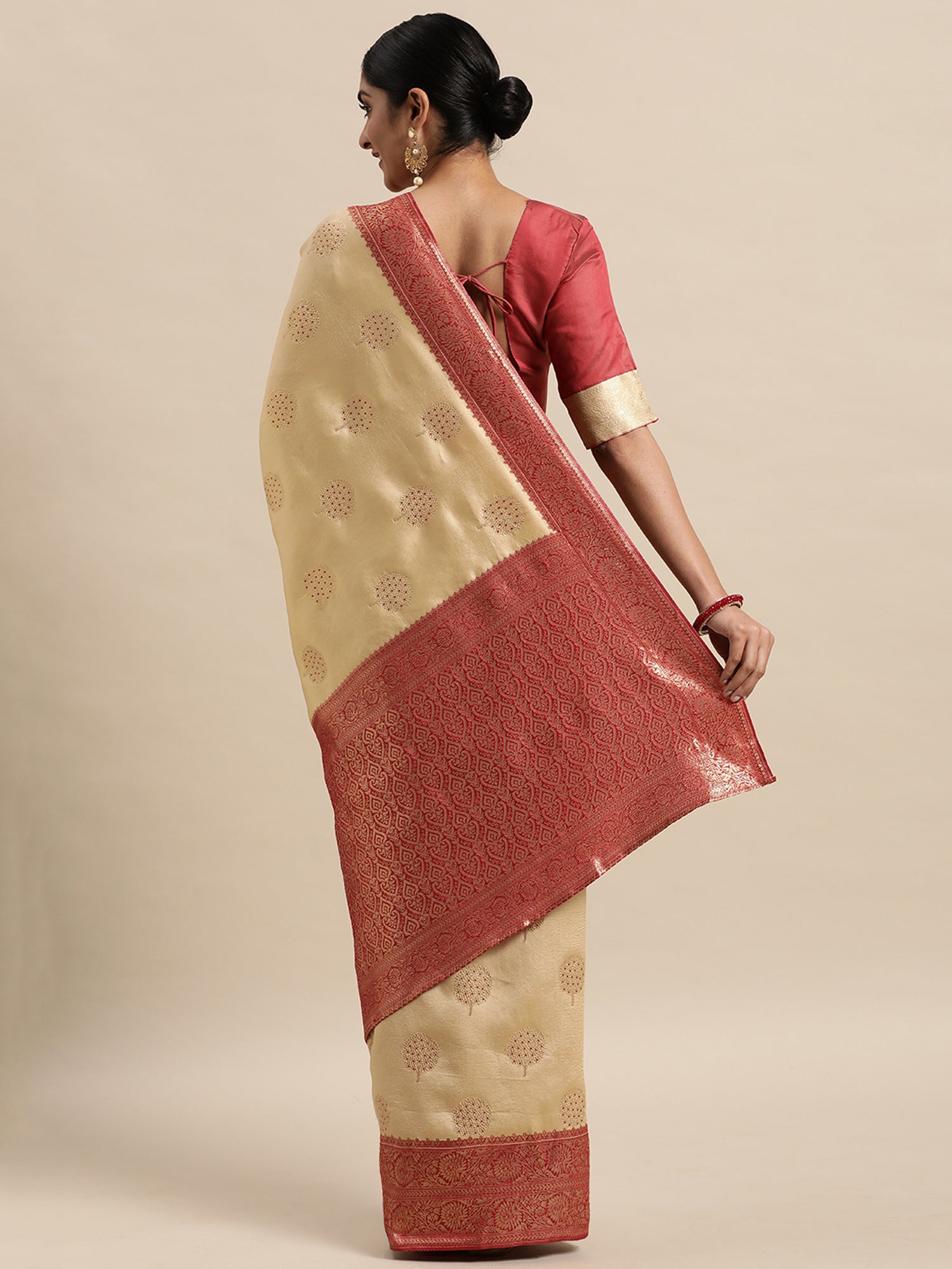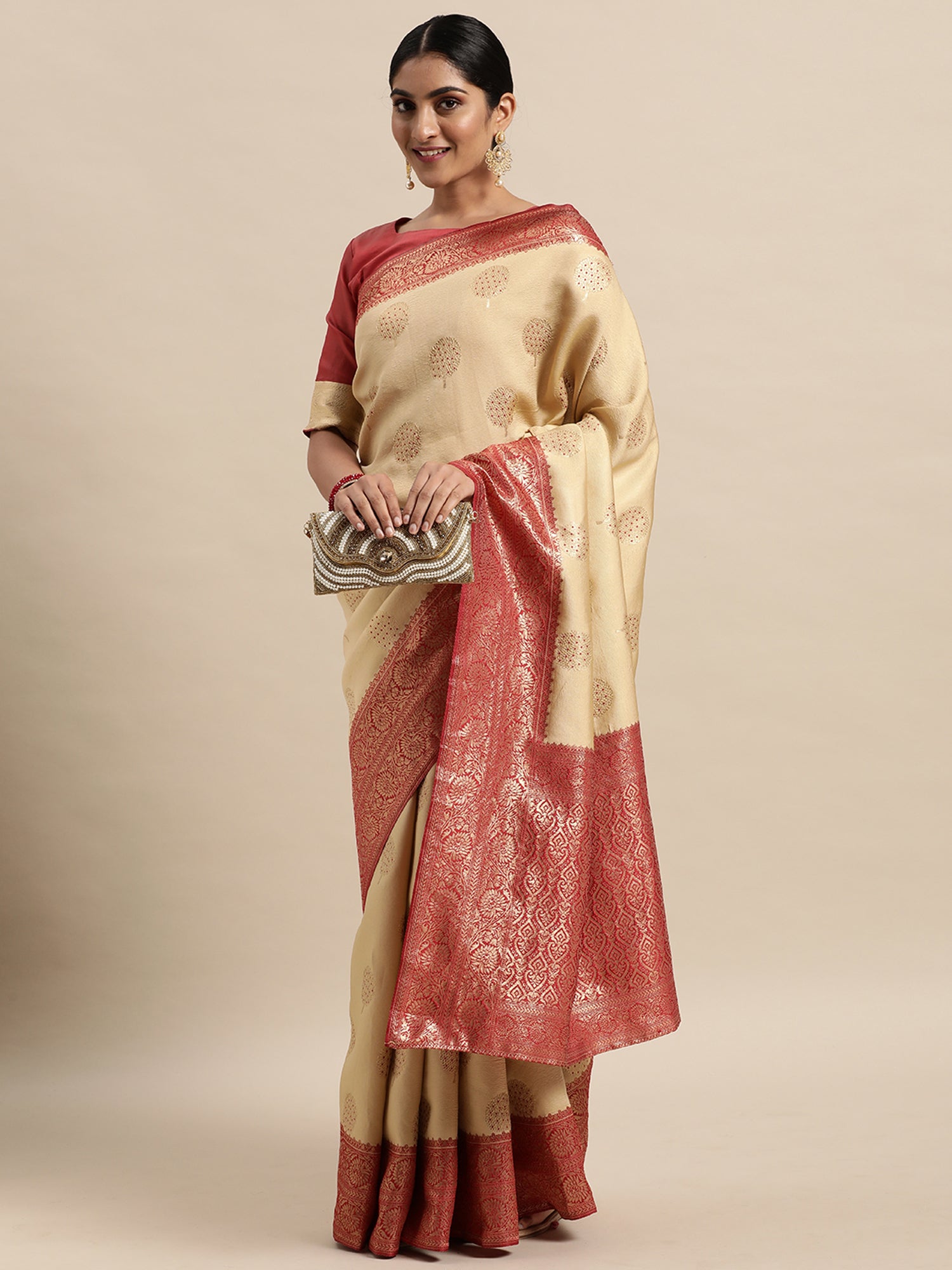 This saree from the house of Yora Ethnic is made from Silk Blend and is Cream in color. Yora Ethnic Ethnic Sarees comes With Blouse Piece, Which can be Stitched according to Your Taste and Preference. This Saree is Crafted by Skill Craftsmen without Compromising on its Quality. With This Beautiful Design and Fabric, This Saree will fetch You Oodles of Compliments and Praise. saree fit size is 5.5 mtr saree & 0.8 mtr blouse, Free Size |.