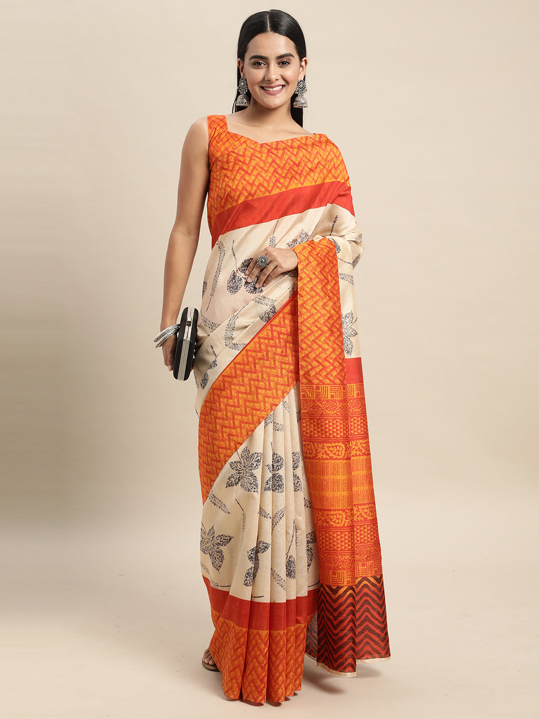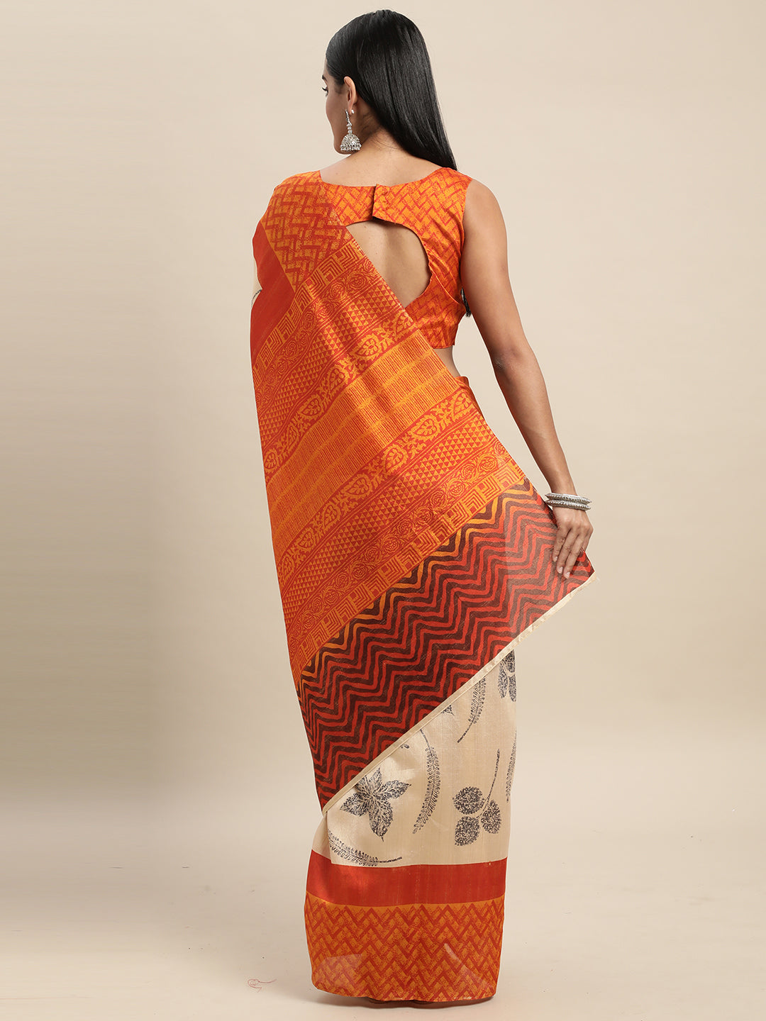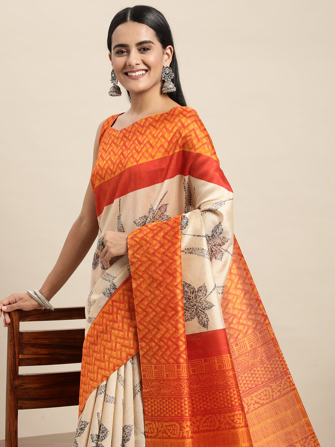 This saree from the house of Yora Ethnic is made from Bhagalpuri Silk and is Cream in color. Yora Ethnic Ethnic Sarees comes With Blouse Piece, Which can be Stitched according to Your Taste and Preference. This Saree is Crafted by Skill Craftsmen without Compromising on its Quality. With This Beautiful Design and Fabric, This Saree will fetch You Oodles of Compliments and Praise. saree fit size is 5.5 mtr saree & 0.8 mtr blouse, Free Size |.