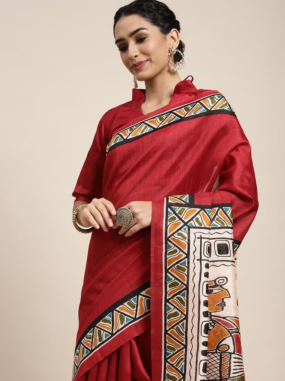 This saree from the house of Yora Ethnic is made from Bhagalpuri Silk and is Maroon in color. Yora Ethnic Ethnic Sarees comes With Blouse Piece, Which can be Stitched according to Your Taste and Preference. This Saree is Crafted by Skill Craftsmen without Compromising on its Quality. With This Beautiful Design and Fabric, This Saree will fetch You Oodles of Compliments and Praise. saree fit size is 5.5 mtr saree & 0.8 mtr blouse, Free Size |.