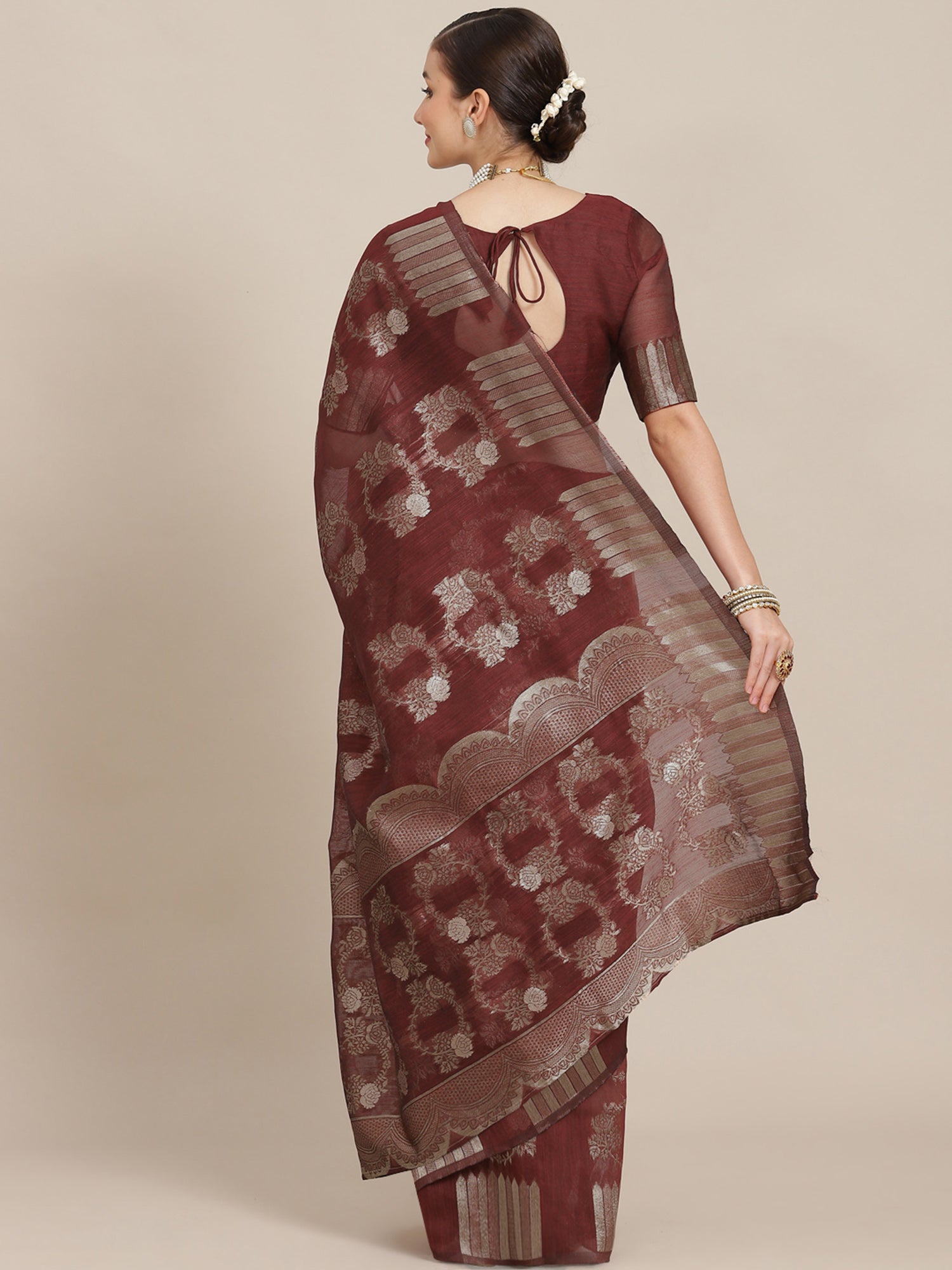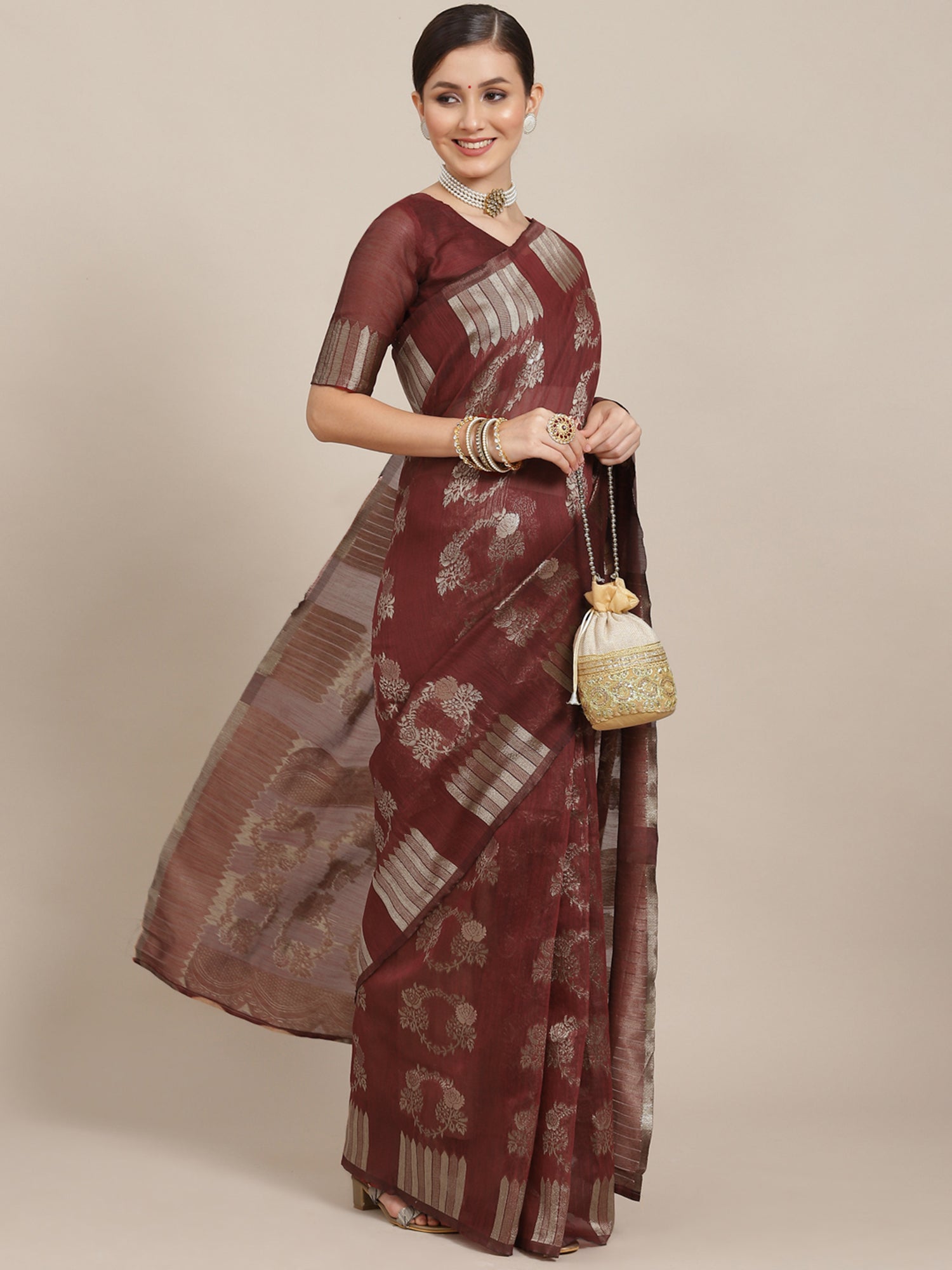 This saree from the house of Yora Ethnic is made from Cotton Blend and is Maroon in color. Yora Ethnic Ethnic Sarees comes With Blouse Piece, Which can be Stitched according to Your Taste and Preference. This Saree is Crafted by Skill Craftsmen without Compromising on its Quality. With This Beautiful Design and Fabric, This Saree will fetch You Oodles of Compliments and Praise. saree fit size is 5.5 mtr saree & 0.8 mtr blouse, Free Size |banarsi saree party saree weaving saree.