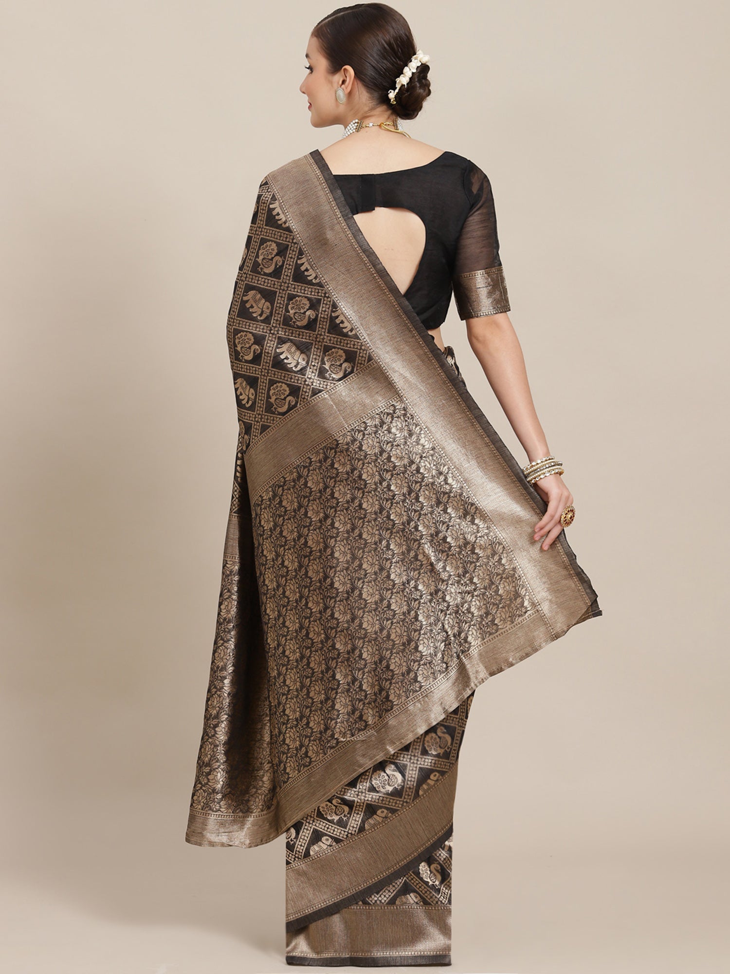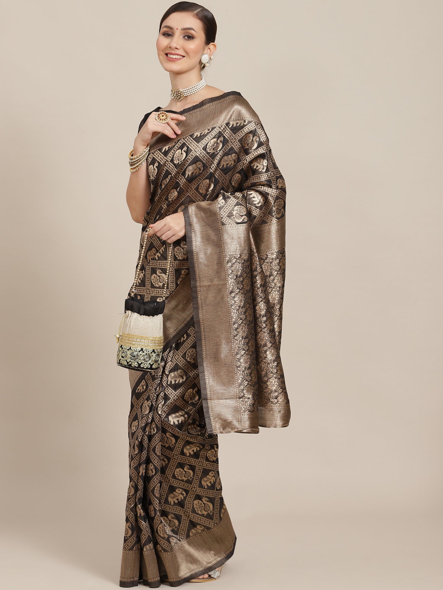 This saree from the house of Yora Ethnic is made from Cotton Blend and is Black in color. Yora Ethnic Ethnic Sarees comes With Blouse Piece, Which can be Stitched according to Your Taste and Preference. This Saree is Crafted by Skill Craftsmen without Compromising on its Quality. With This Beautiful Design and Fabric, This Saree will fetch You Oodles of Compliments and Praise. saree fit size is 5.5 mtr saree & 0.8 mtr blouse, Free Size |banarsi saree party saree weaving saree.