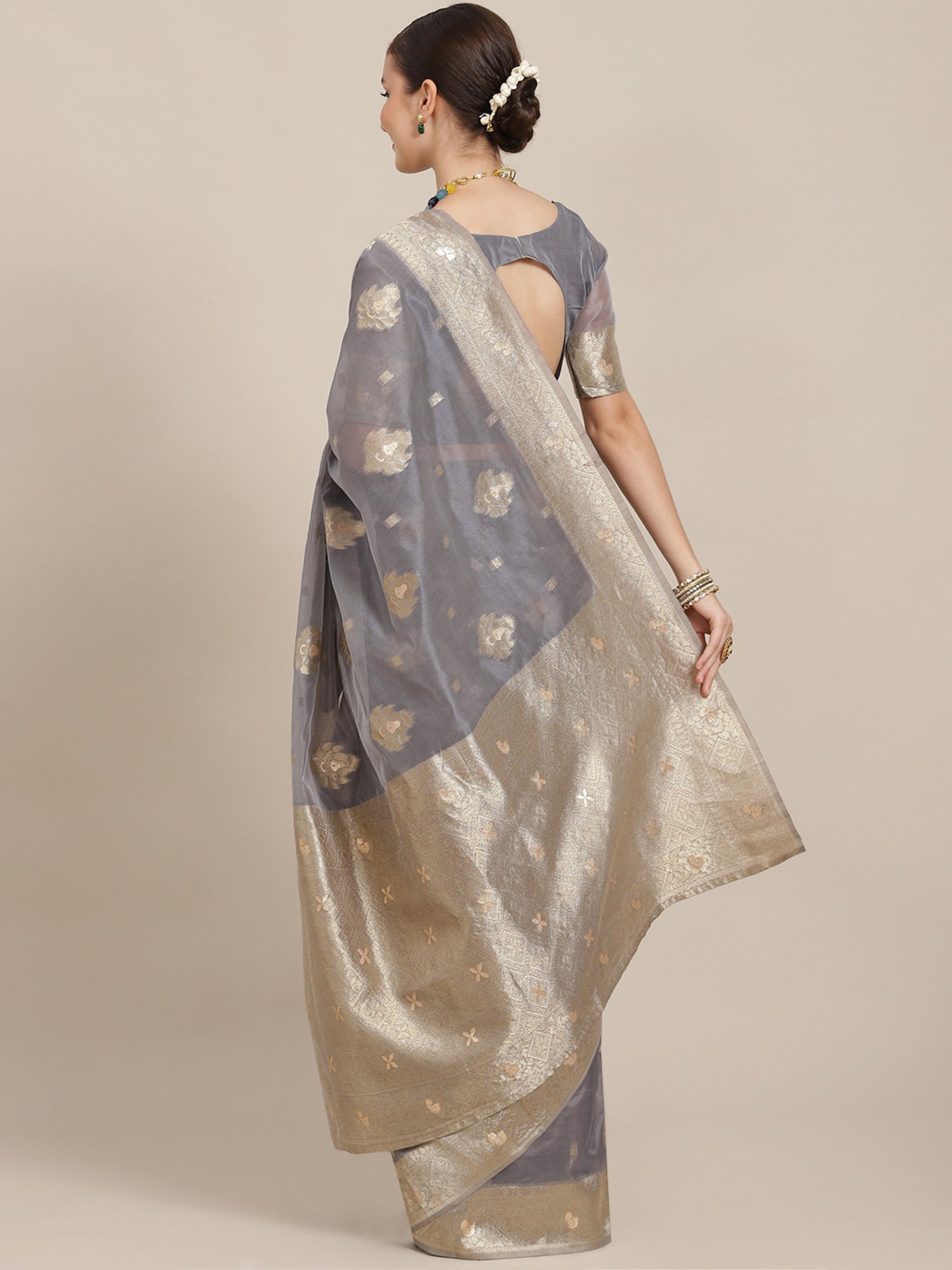 This saree from the house of Yora Ethnic is made from Silk Blend and is Grey in color. Yora Ethnic Ethnic Sarees comes With Blouse Piece, Which can be Stitched according to Your Taste and Preference. This Saree is Crafted by Skill Craftsmen without Compromising on its Quality. With This Beautiful Design and Fabric, This Saree will fetch You Oodles of Compliments and Praise. saree fit size is 5.5 mtr saree & 0.8 mtr blouse, Free Size |banarsi saree party saree weaving saree.