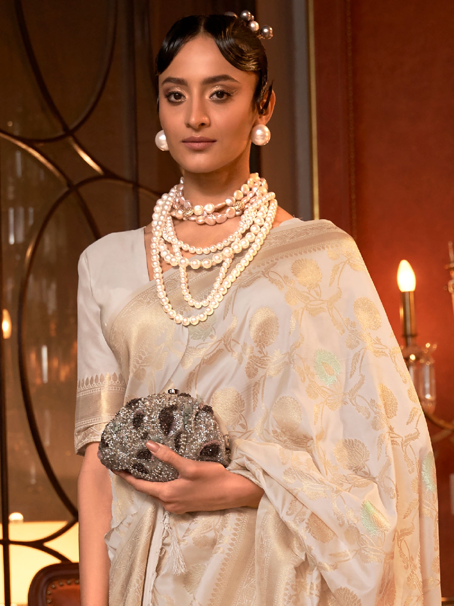This saree from the house of Yora Ethnic is made from Silk Blend and is Cream in color. Yora Ethnic Ethnic Sarees comes With Blouse Piece, Which can be Stitched according to Your Taste and Preference. This Saree is Crafted by Skill Craftsmen without Compromising on its Quality. With This Beautiful Design and Fabric, This Saree will fetch You Oodles of Compliments and Praise. saree fit size is 5.5 mtr saree & 0.8 mtr blouse, Free Size |handloom weaving sarees.