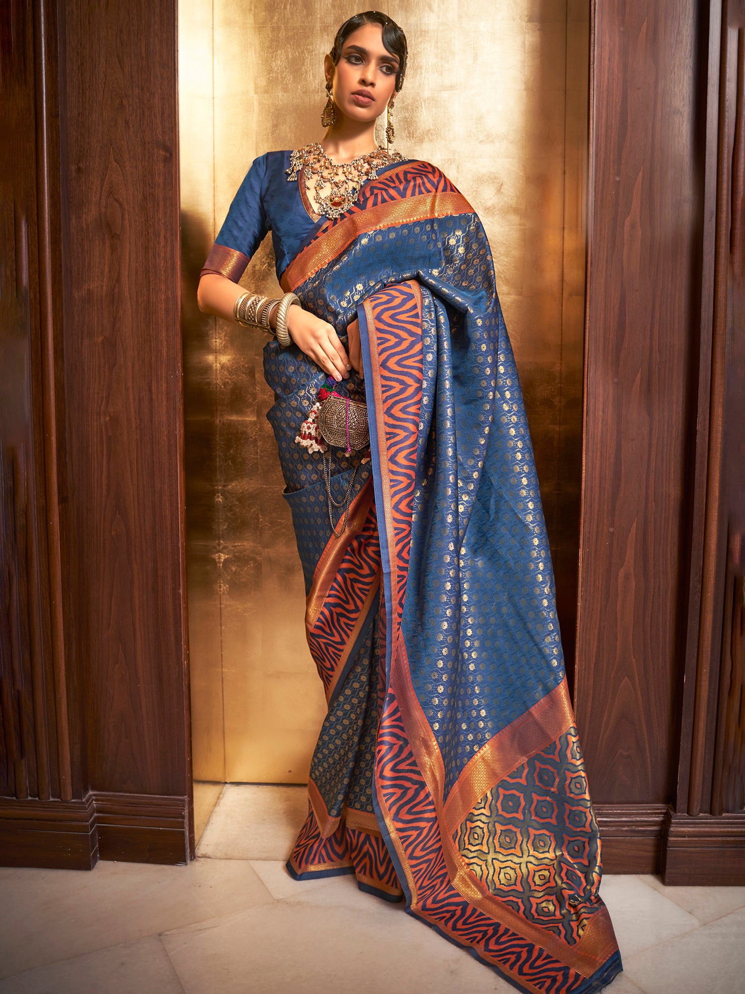 This saree from the house of Yora Ethnic is made from Silk Blend and is Navy Blue in color. Yora Ethnic Ethnic Sarees comes With Blouse Piece, Which can be Stitched according to Your Taste and Preference. This Saree is Crafted by Skill Craftsmen without Compromising on its Quality. With This Beautiful Design and Fabric, This Saree will fetch You Oodles of Compliments and Praise. saree fit size is 5.5 mtr saree & 0.8 mtr blouse, Free Size |handloom weaving sarees.