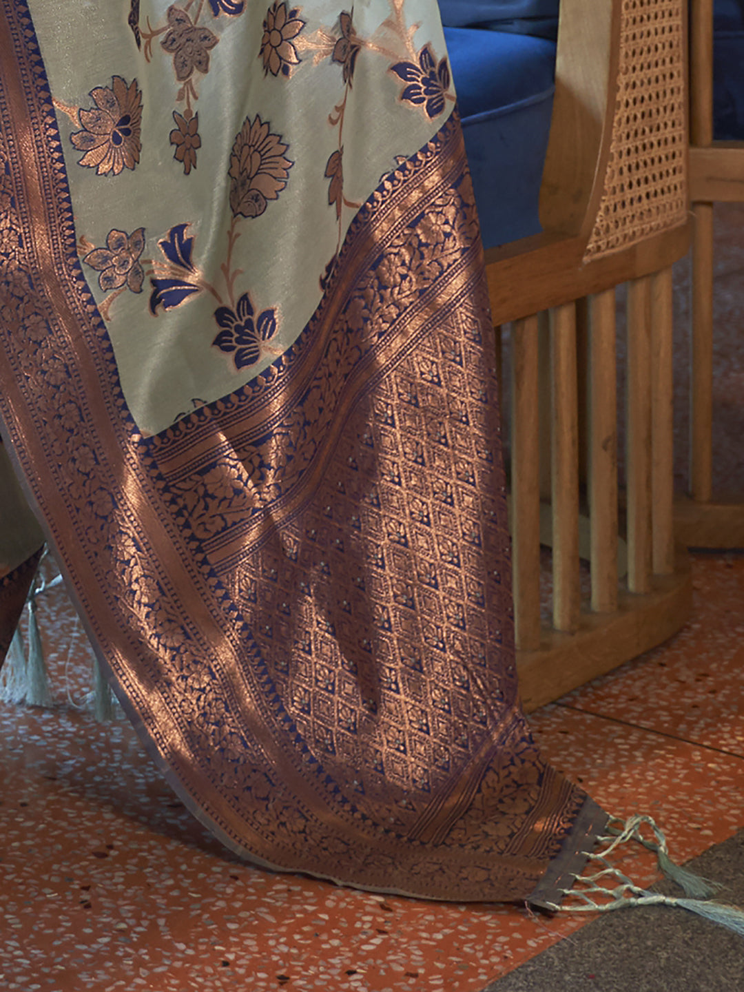 This saree from the house of Yora Ethnic is made from Organza and is Turquoise in color. Yora Ethnic Ethnic Sarees comes With Blouse Piece, Which can be Stitched according to Your Taste and Preference. This Saree is Crafted by Skill Craftsmen without Compromising on its Quality. With This Beautiful Design and Fabric, This Saree will fetch You Oodles of Compliments and Praise. saree fit size is 5.5 mtr saree & 0.8 mtr blouse, Free Size |Shimmer organza copper zari weaving saree.