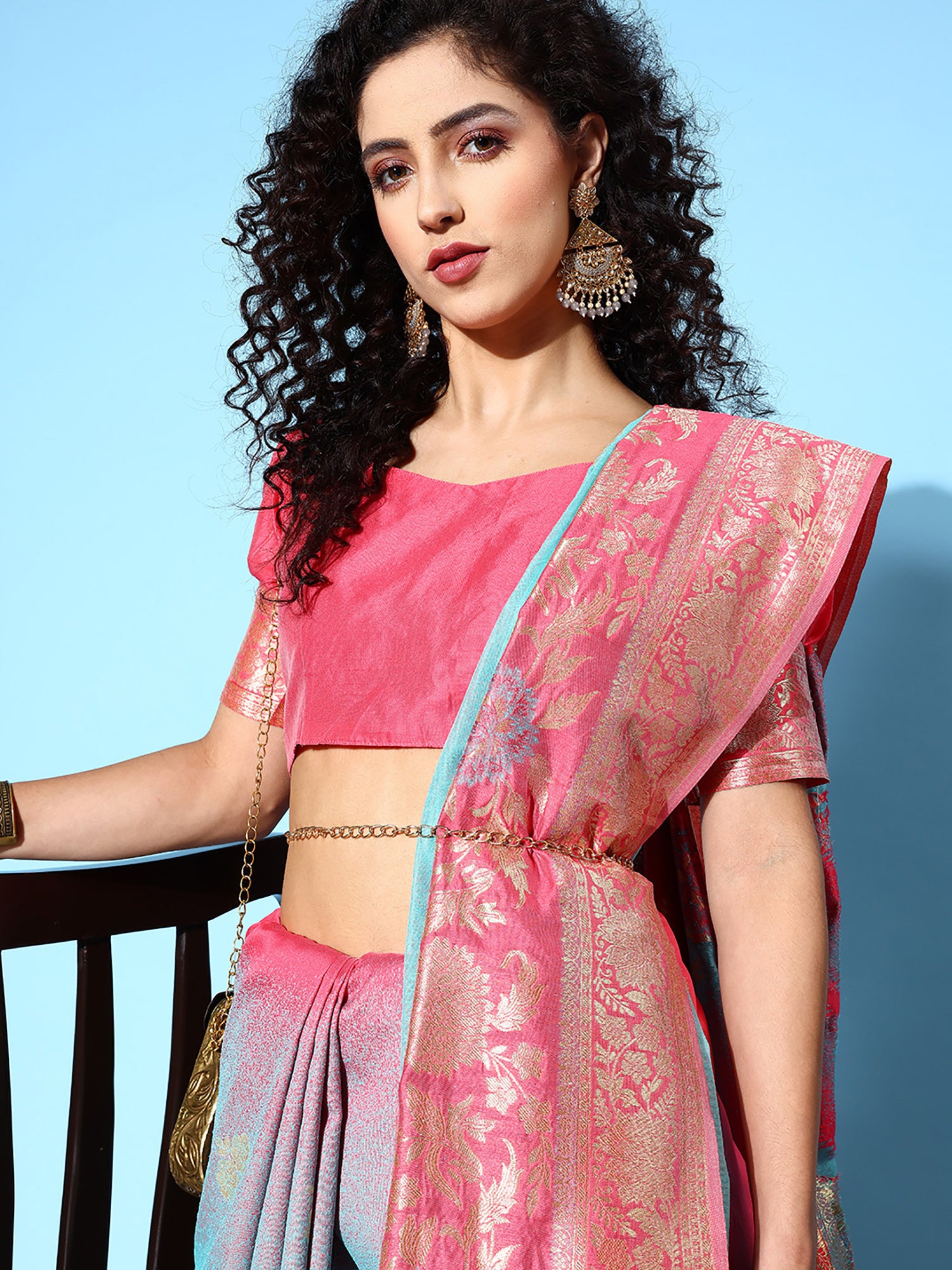 This saree from the house of Yora Ethnic is made from Silk Blend and is Pink in color. Yora Ethnic Ethnic Sarees comes With Blouse Piece, Which can be Stitched according to Your Taste and Preference. This Saree is Crafted by Skill Craftsmen without Compromising on its Quality. With This Beautiful Design and Fabric, This Saree will fetch You Oodles of Compliments and Praise. saree fit size is 5.5 mtr saree & 0.8 mtr blouse, Free Size |kanjivarm saree Banarsi saree.