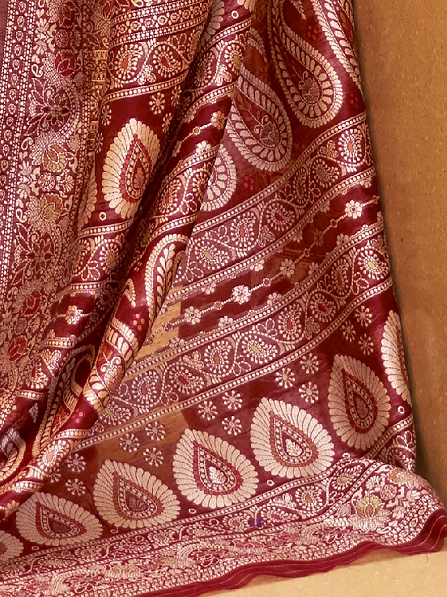 MAROON KITASHA LUCKNOWI SILK