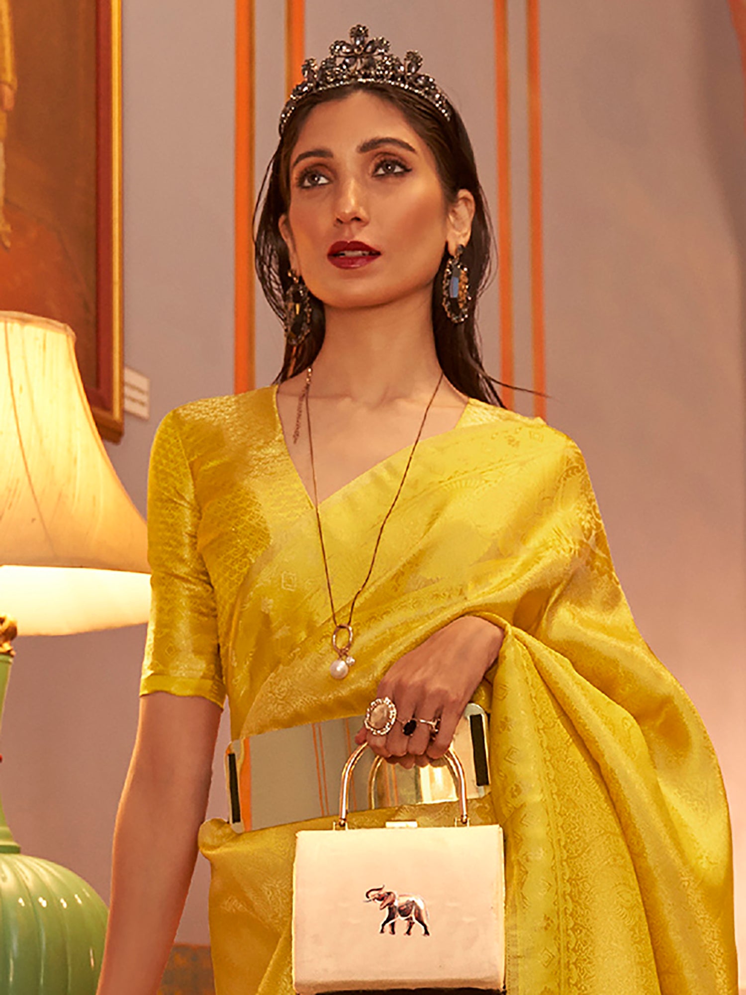 This saree from the house of Yora Ethnic is made from Nylon and is Yellow in color. Yora Ethnic Ethnic Sarees comes With Blouse Piece, Which can be Stitched according to Your Taste and Preference. This Saree is Crafted by Skill Craftsmen without Compromising on its Quality. With This Beautiful Design and Fabric, This Saree will fetch You Oodles of Compliments and Praise. saree fit size is 5.5 mtr saree & 0.8 mtr blouse, Free Size |Nylon satin weaving saree.