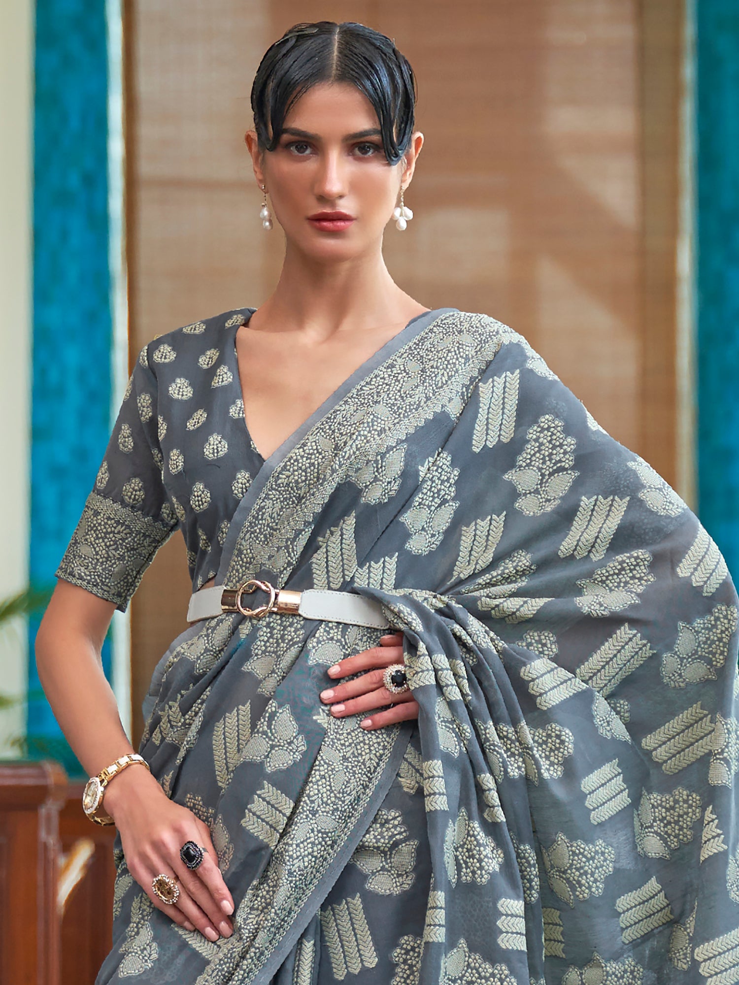 This saree from the house of Yora Ethnic is made from Cotton Linen and is Charcoal Grey in color. Yora Ethnic Ethnic Sarees comes With Blouse Piece, Which can be Stitched according to Your Taste and Preference. This Saree is Crafted by Skill Craftsmen without Compromising on its Quality. With This Beautiful Design and Fabric, This Saree will fetch You Oodles of Compliments and Praise. saree fit size is 5.5 mtr saree & 0.8 mtr blouse, Free Size |Chickankari weaving saree.