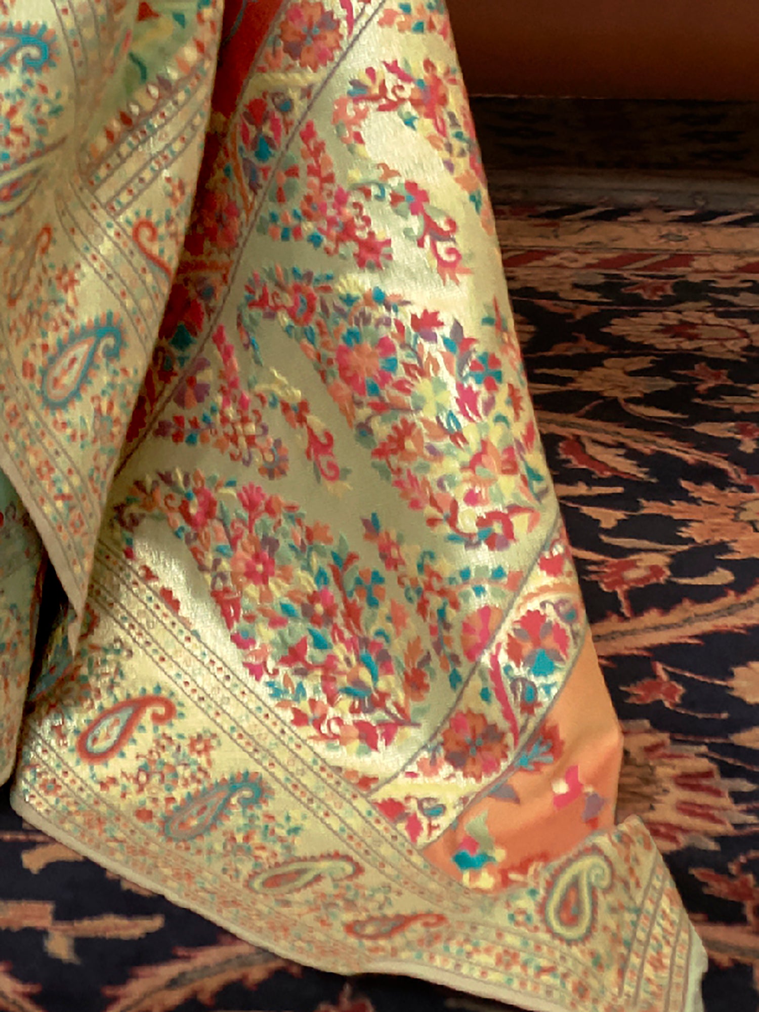 This saree from the house of Yora Ethnic is made from Silk Blend and is Green in color. Yora Ethnic Ethnic Sarees comes With Blouse Piece, Which can be Stitched according to Your Taste and Preference. This Saree is Crafted by Skill Craftsmen without Compromising on its Quality. With This Beautiful Design and Fabric, This Saree will fetch You Oodles of Compliments and Praise. saree fit size is 5.5 mtr saree & 0.8 mtr blouse, Free Size |Kashmiri Modal Handloom Weaving Saree.