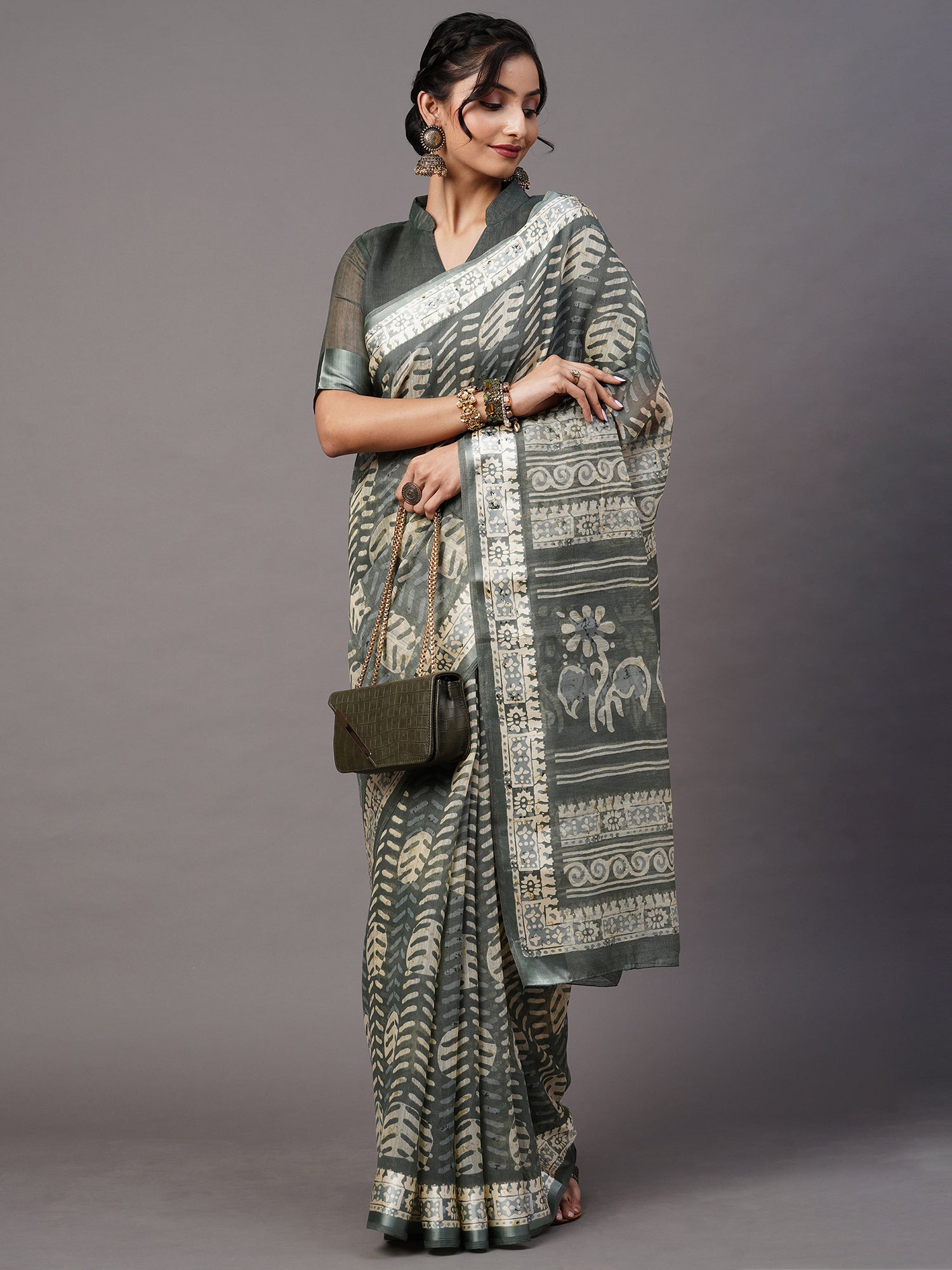This saree from the house of Yora Ethnic is made from Cotton Blend and is Sea Green in color. Yora Ethnic Ethnic Sarees comes With Blouse Piece, Which can be Stitched according to Your Taste and Preference. This Saree is Crafted by Skill Craftsmen without Compromising on its Quality. With This Beautiful Design and Fabric, This Saree will fetch You Oodles of Compliments and Praise. saree fit size is 5.5 mtr saree & 0.8 mtr blouse, Free Size |Linen cotton saree ikat saree.
